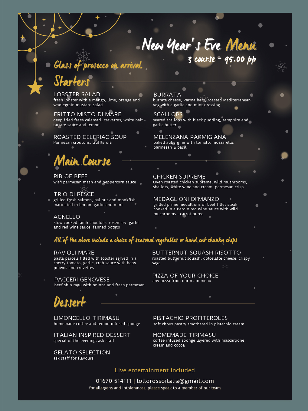To avoid disappointment, we recommend you book your table or party in advance.